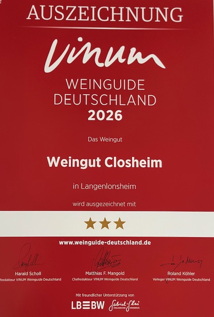 Es ist eine wunderschöne Bestätigung für das, was wir mit Herzblut tun – jeden Tag, im Weinberg wie im Keller. Und es ist ein gemeinsamer Erfolg, denn ohne Ihre Begeisterung, Ihre Treue und Ihr Feedback wären wir nicht da wo wir heute stehen.